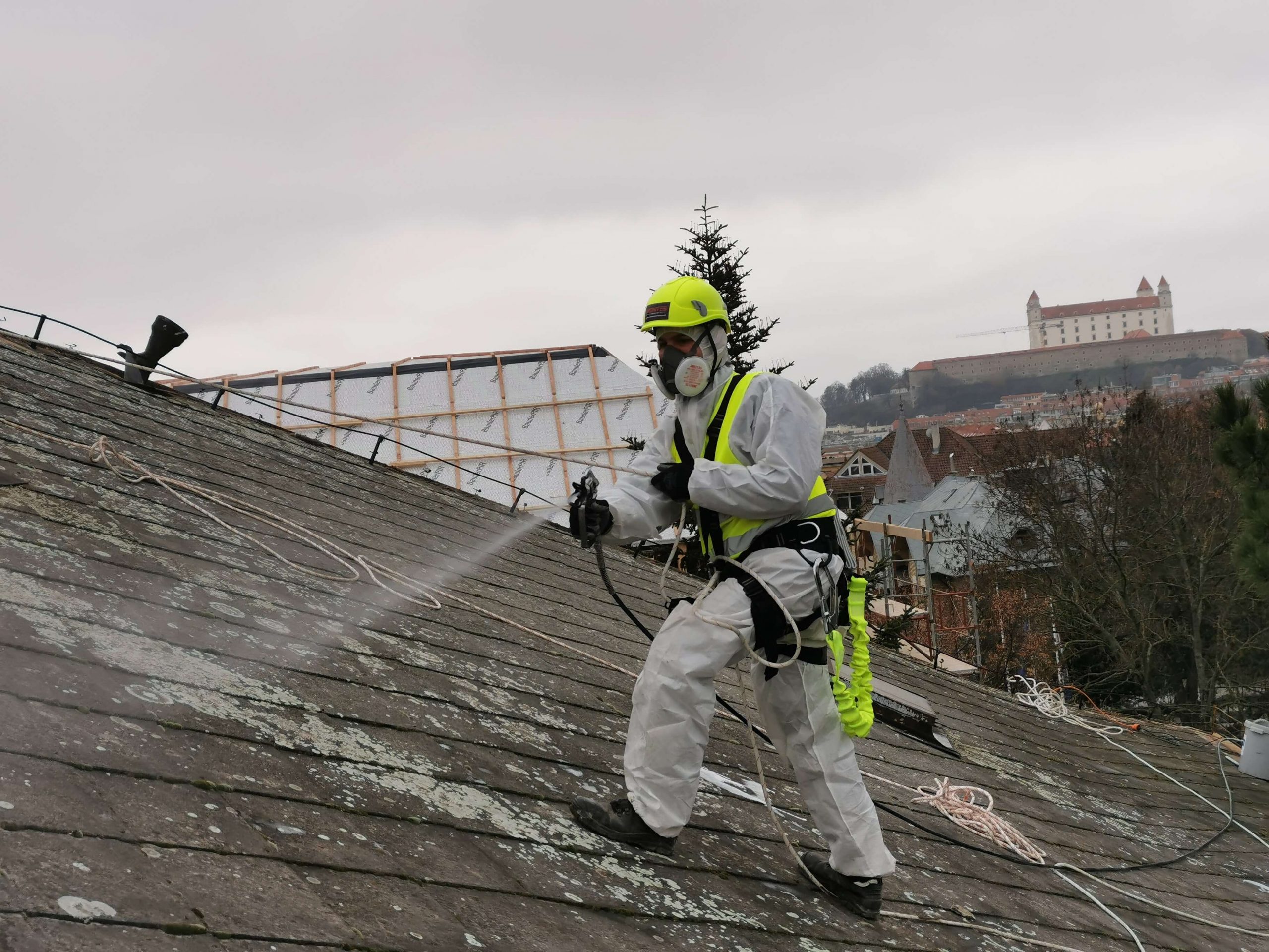 Eternitová krytina, bežná pri starších bytových domoch so šikmými strechami, dnes predstavuje environmentálnu záťaž. Realizácia sanácie štvorposchodového objektu s valbovou strechou prebehla s dôrazom na bezpečnosť a platnú legislatívu.