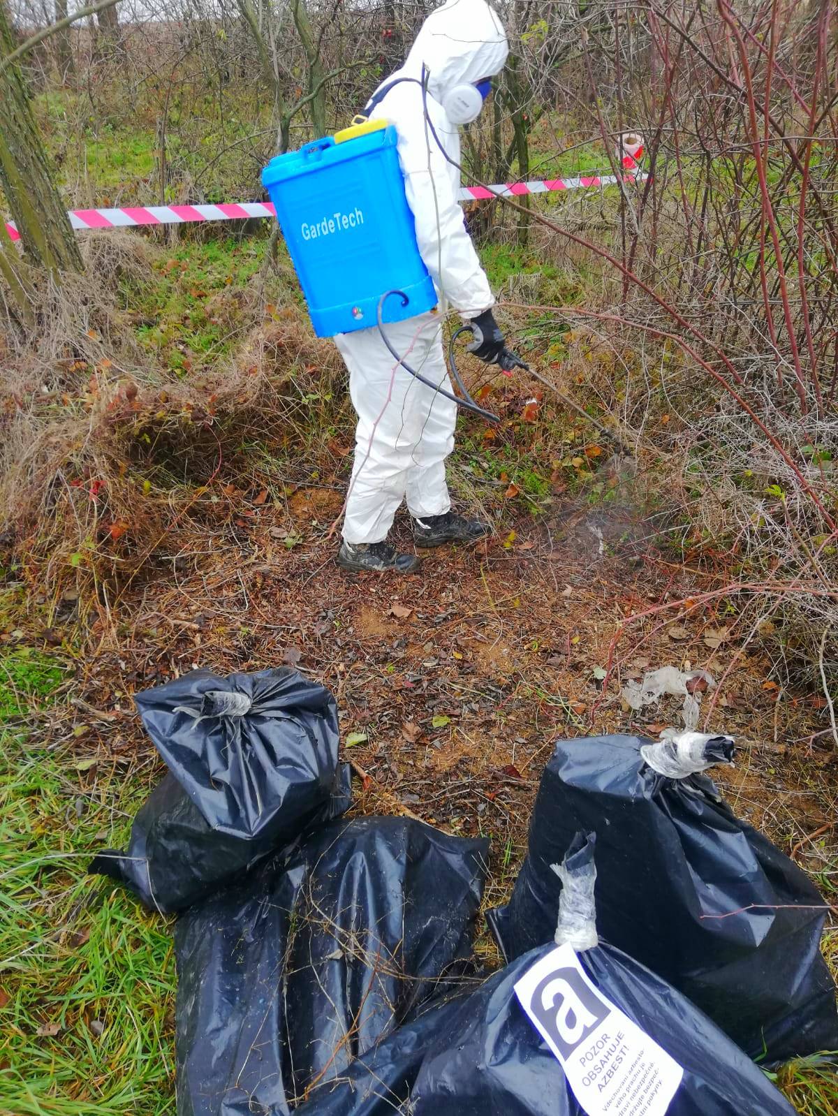 - Hermetické balenie: Azbest je priamo na mieste balený do certifikovaných PVC vriec, ktoré sa následne hermeticky uzatvárajú.